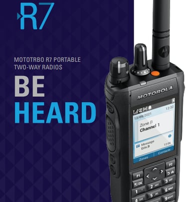 The Motorola MOTOTRBO R7 digital two way radio brings together years of experience and development to deliver a feature packed two-way radio. With an IP68 rating, integrated Bluetooth, GPS location tracking and voice/data capabilities, it brings workers to the next level of connectivity, safety and productivity.
